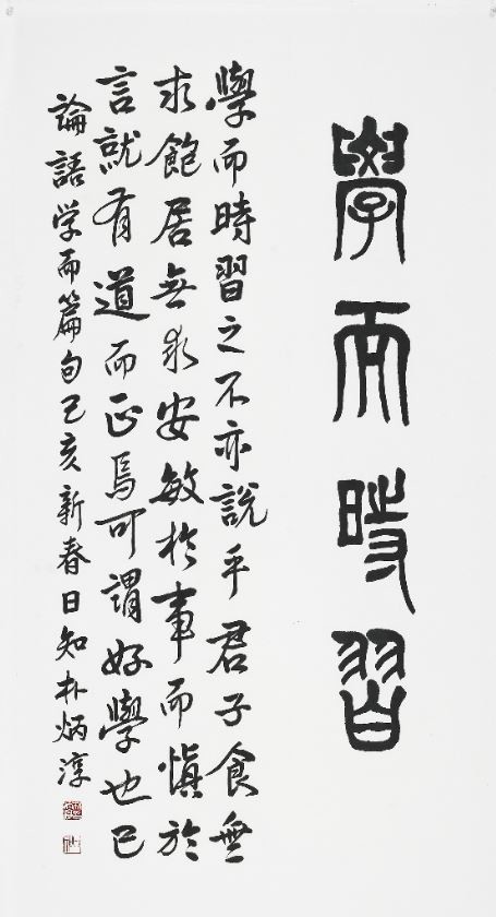 | ▲ 박병순–학이시습(學而時習) 배우고 때에 맞게 익히니 기쁘지 아니한가! 군자는 배부름을 구하지 않으며 안일하게 살지 않고, 일은 민첩하게, 말은 신중히 하여 도 있는 이에게 나아가 자신을 바르게 한다. 이렇게 하면 가히 배우기를 좋아한다고 이를 만하다.- 논어 학이편 중- |