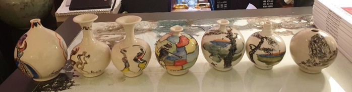 | ▲ ‘앙데팡당 2019 코리아’ 대상을 비롯하여 최우수상 일요주간 예술상 수상 작가들에게는 김 화백(한국 뇌 융합 예술원 원장)의 특별한 도자기 트로피가 수여되어 갤러리들의 시선을 사로잡고 있다. |