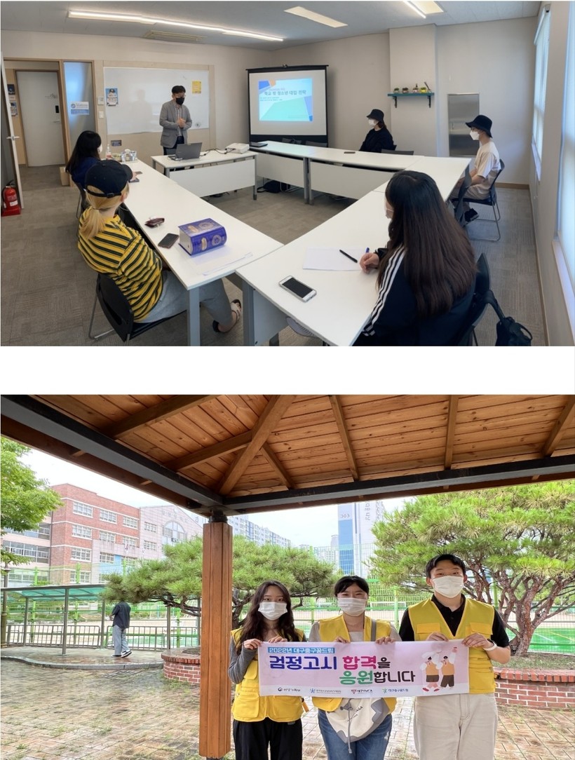 | ▲대구중구꿈드림 대학진학상담반(위), 2022년도 제2회 검정고시 시험장 아웃리치 활동(아래).(사진=대구YMCA) |
