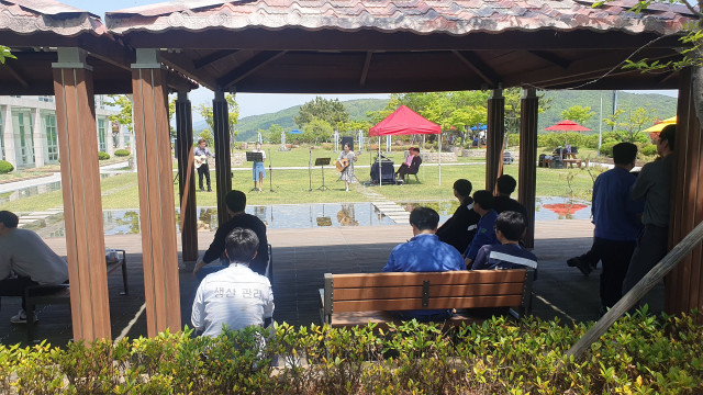▲ 지난 4월 성우하이텍 양산 서창사업장 5층 야외정원에서 ‘야외 정원 버스킹’ 공연이 열렸다. (사진 = 성우하이텍 제공) |