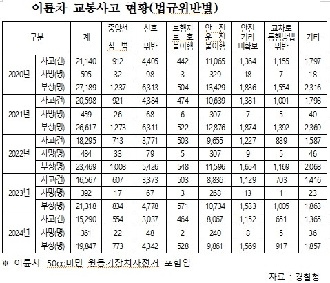 ▲ 이륜차 교통사고 현황(법규위반별) (자료=경찰청)