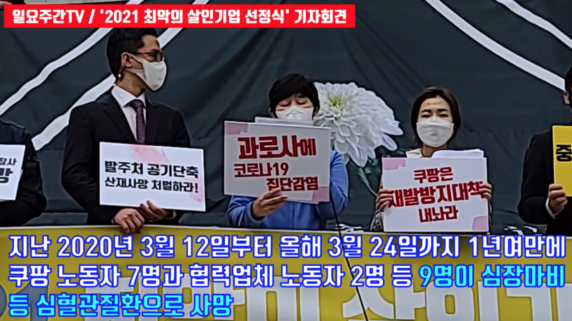 이날 선정식에서 ‘2021 최악의 살인기업’ 1위에 ‘한익스프레스’가 선정된데 이어 특별상은 이커머스 기업 쿠팡이 선정되는 불명예를 안았다.