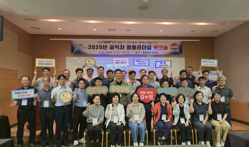 [일요주간=최부건 기자] 김천시는 지난 9월 16~17일 이틀간 충청북도 단양군 일원에서 간부 공무원 35명을 대상으로 2025 공직자 청렴 워크숍을 열었다. 이번 워크숍은 국민권익위원회 청렴 컨설팅과 자체 청렴도 측정 결과를 반영, 간부 공무원을 중심으로 청렴 가치를 확산하고 부서 간 협력 증진과 소통·화합·신뢰 구축을 목적으로 추진됐다.