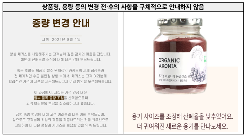 상품 제조·판매업자, 상품 용량 등 변동 시 소비자에게 반드시 알려야