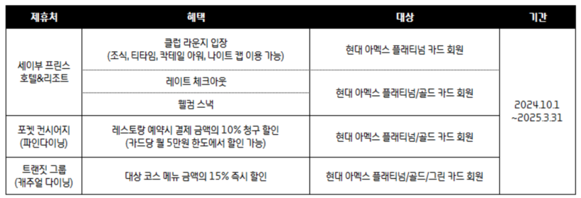 자세한 내용은 현대카드 앱 아멕스 회원 전용 페이지에서 확인할 수 있다.