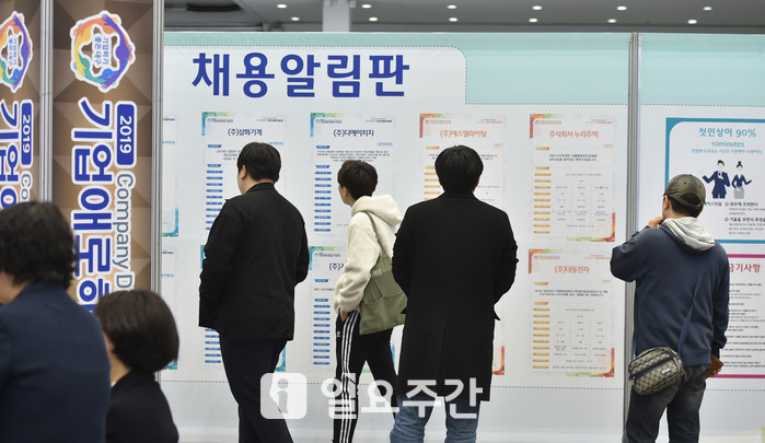 | ▲현장채용박람회에서 청년 구직자들이 채용알림판을 보고 있는 모습. |