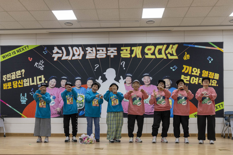 [일요주간=최부건 기자] 지난 18일, 경북 칠곡군 지천면사무소 3층 강당이 뜨거운 열기로 가득 찼다. 대한민국을 대표하는 할머니 힙합 그룹 ‘수니와칠공주’의 새로운 멤버를 뽑는 오디션이 열린 것이다. 6:1의 치열한 경쟁 속에서 도전장을 던진 6명의 할머니들은 단 하나의 자리를 놓고 실력을 겨뤘다.