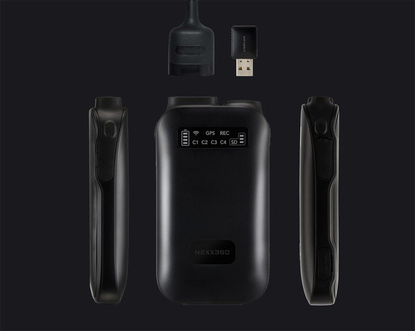 목에 걸어 사용하는 넥스360은 F2.0의 HD 화질급 4개 카메라가 탑재돼 실제 시야와 유사한 눈높이로 촬영되며, 개별 카메라 당 130만 화소에 노이즈 리덕션 기능으로 이동 중에도 흔들리지 않고 선명한 녹화가 가능하다. 제품은 크게 넥카메라 부분과 시스템 바디 부분으로 나뉘어져 있다.