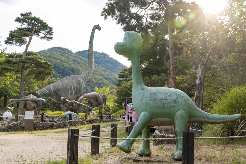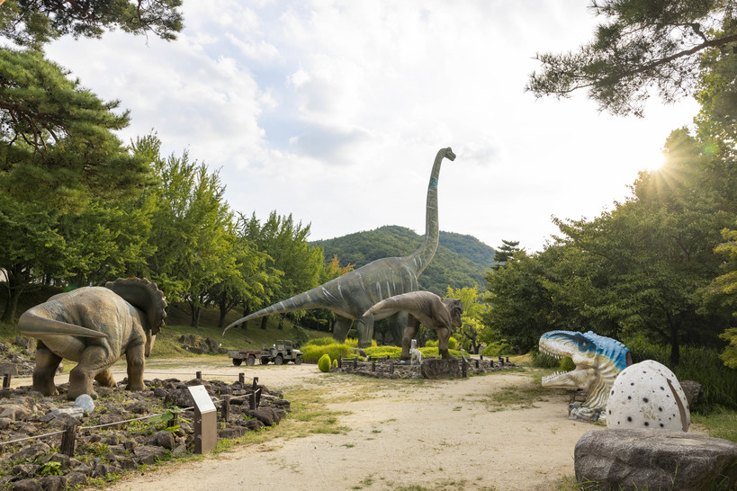 ▲ 여러 공룡 모형과 함께 전시된 가산수피아 공룡공원. 어린이들의 체험형 학습 공간으로도 인기를 끌고 있다.(사진=칠곡군) |