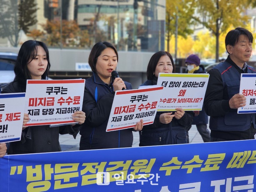 노조는 지난 11일 쿠쿠홈시스 본사 앞 기자회견을 열고 “회사가 비정상적인 수수료 체계를 통해 매니저(방문점검원)의 수입을 줄였다”고 주장했다.