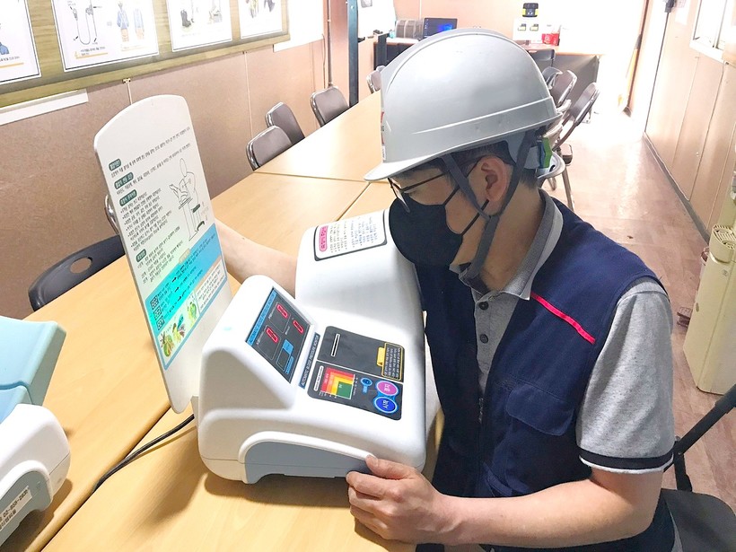 ▲ 부영 아파트 공사 현장에서 근로자가 건강 체크를 하고 있다. (사진=부영그룹 제공)