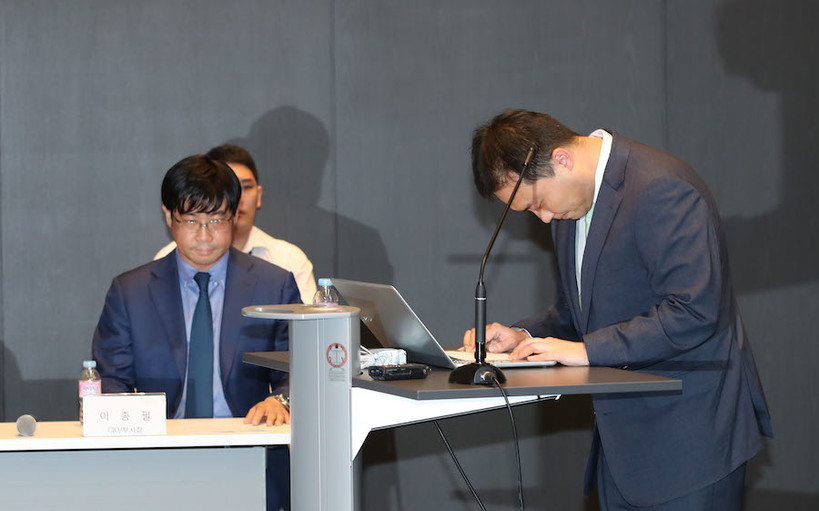 ▲ 고개 숙여 사과하는 원종준 라임자산운용 대표이사 (사진=뉴시스) |