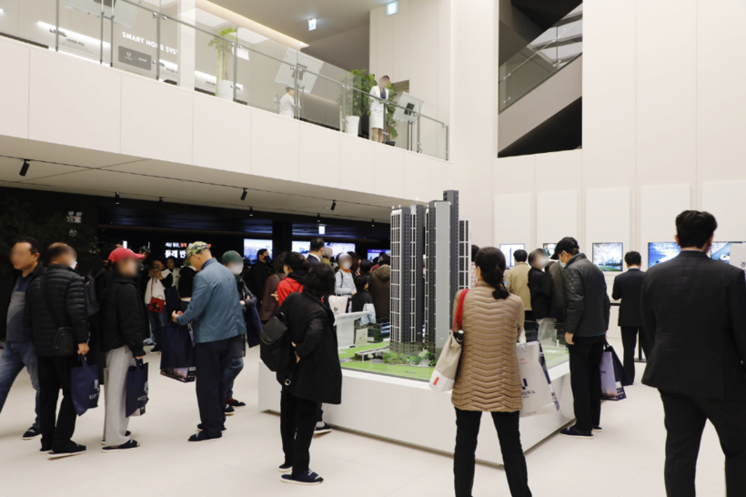| ▲ 지난 3월28일 오픈한 ‘동래반도유보라’모델하우스에서 방문객이 조형도를 관람하고 있다. (사진=반도건설 제공) |
