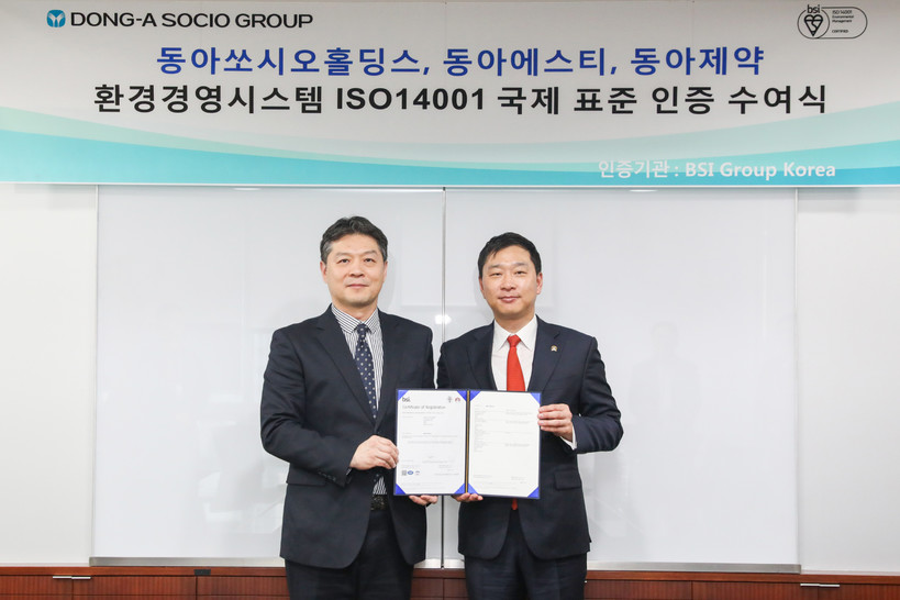 [일요주간 = 하수은 기자] 동아쏘시오그룹은 동아쏘시오홀딩스, 동아에스티, 동아제약 3개사 본사영역이 영국왕립표준협회(BSI : British Standards Institution)로부터 국제표준화기구 기술위원회에서 제정한 환경경영체제 국제표준인 ISO14001 인증을 획득했다고 5일 밝혔다.