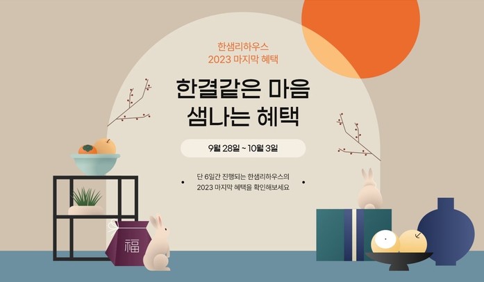 [일요주간 = 노현주 기자] 가구 및 인테리어 전문 업체 한샘이 가을 혼수·이사 시즌과 추석 연휴의 동시 다발적인 시기를 맞이해 다양한 할인 이벤트를 실시한다고 20일 전했다.