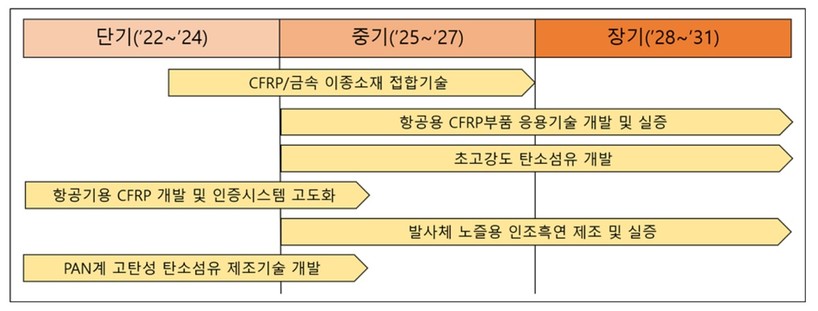 ▲우주항공 분야 탄소소재 6대 핵심기술 로드맵. (사진=산업통상자원부) |