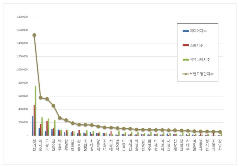 1월 CEO 브랜드평판 30위 순위는 정의선, 이재용, 구광모, 김승연, 박현주, 함영주, 신동빈, 강호동, 조현준, 최태원, 양종희, 조원태, 서경배, 방준혁, 이중근, 이해진, 박정원, 김영섭, 황병우, 이재현, 이명희, 서정진, 신창재, 장형진, 허태수, 이웅열, 정몽규, 정지선, 조양래, 장인화 순으로 분석됐다.