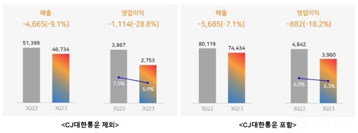 더불어 대한통운을 포함한 CJ제일제당의 연결 기준 3분기 실적도 공시를 통해 발표됐다. 매출 7조 4434억 원, 영업이익 3960억 원을 기록, 전년 대비 각각 7.1%, 18.2% 감소한 수치다.