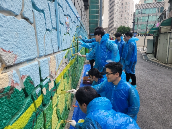 벽화 그리기 봉사활동은 동대문구와 함께 지역 주민들을 위해 쾌적하고 안전한 보행 환경을 만들기 위해 마련됐다.