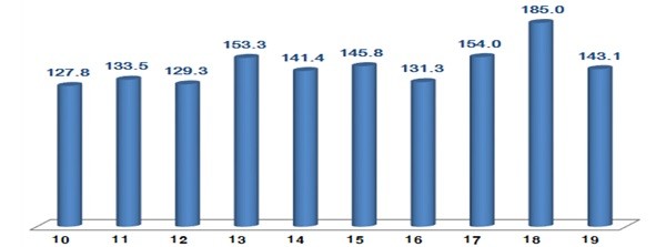 | ▲ 연도별 5월 ICT 수출액(억불).(산업통상자원부 제공) |