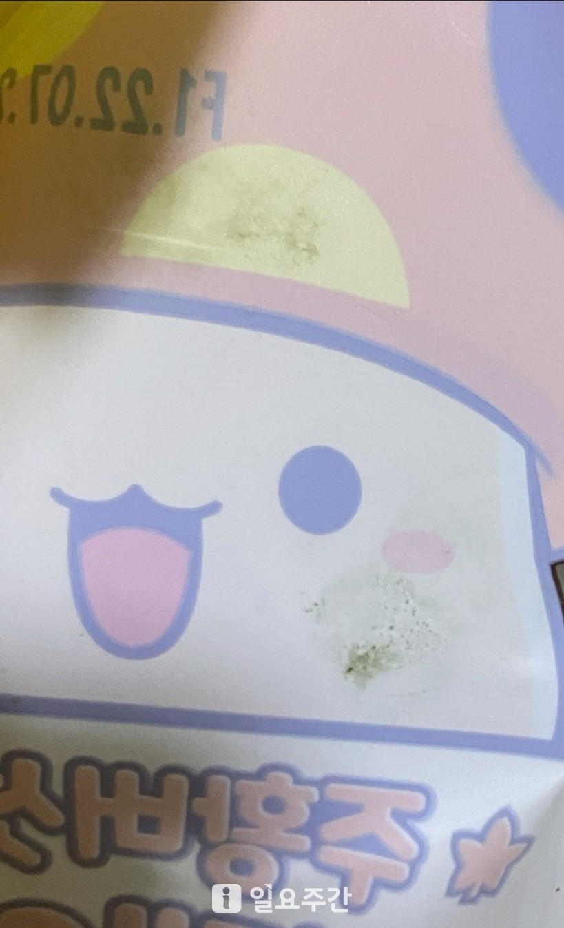 ▲A 씨의 초등학교 딸 아이가 유통기한이 지난 빵을 먹고 남은 봉지에 묻어 있는 곰팡이 자국.(제보자 제공) |