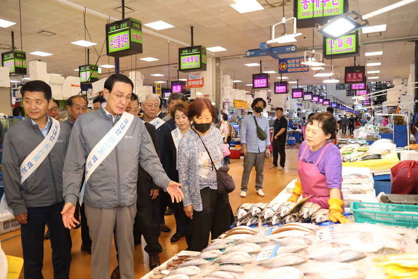 노 회장은 수산물 물가와 수급 상황을 먼저 점검한 뒤 행사장을 찾아 광어와 전복을 구매하면서 이번 할인에 동참한 시장 종사자들을 격려하고 감사의 뜻을 전했다.