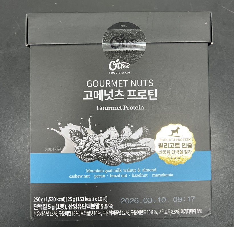 | ▲ 오트리푸드빌리지에서 판매한 ‘고메넛츠 프로틴'. (사진=식약처 제공) |