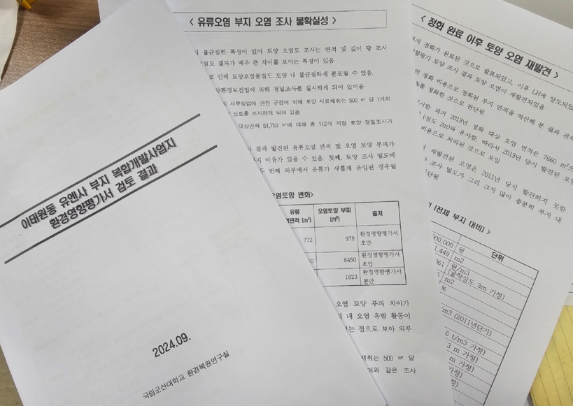 ▲국립군산대학교 환경복원연구실 ‘이태원동 유엔사부지 복합개발사업지 환경영향평가서 검토 결과’ 보고서 |