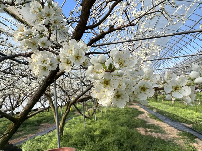 [일요주간=최부건 기자] 지난 7일 따뜻한 봄을 알리는 자두꽃이 만개했다. 김천시 개령면 김해술씨의 하우스 농장에서는 노지보다 약 30일 빠르게 꽃이 만개했다.