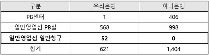하나은행의 경우 모든 가입자가 PB센터와 영업점 PB실에서 상품에 가입한 것과 대조적이다.