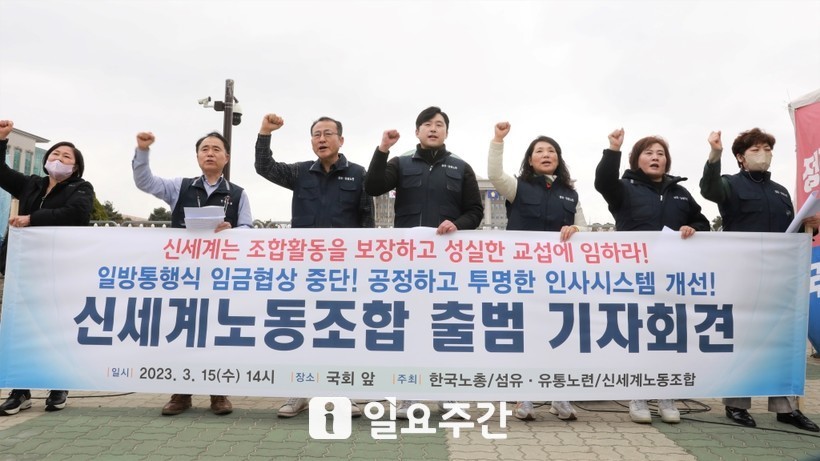 한국노총은 15일 오후 2시 국회 앞에서 기자회견을 열고 전국섬유‧유통노동조합연맹 소속 신세계노동조합의 출범했다고 밝혔다.