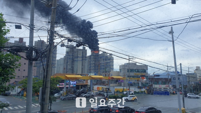 [일요주간 = 김성환 기자] 1일 오후 1시 10분경 부산 덕포동 중흥S클래스 신축 아파트 건설현장에서 화재가 발생해 검은 연기가 치솟고 있다.