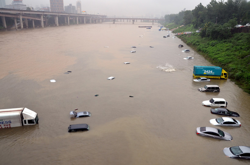 ▲집중호우가 내려 침수된 서울 강남구 탄천주차장.(사진=강남소방서 제공) |