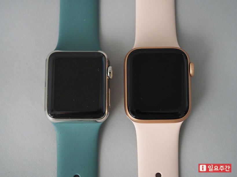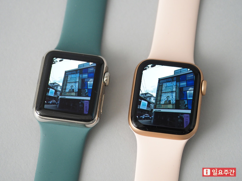 | ▲애플워치 1세대와 5세대의 화면 비교 (사진=지혜수 기자) |