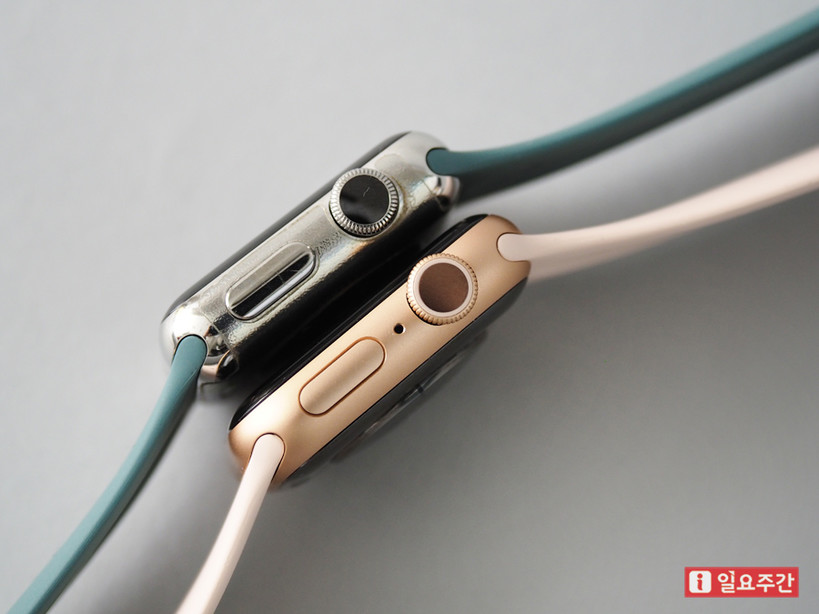 | ▲애플워치 1세대와 5세대의 측면 비교 (사진=지혜수 기자) |