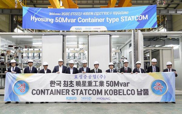 [일요주간 = 조무정 기자] 효성중공업이 지난 6일 경남 함안에서 신기술이 적용된 컨테이너형 스태콤의 출하 기념행사를 개최했다. 이번에 출하된 제품은 효성중공업의 차별화된 MMC(Modular Multilevel Converter) 스태콤 기술을 바탕으로 제작된 것으로 일본 니신전기를 통해 일본의 대표 철강업체 중 하나인 고베제강에 납품될 예정이다.