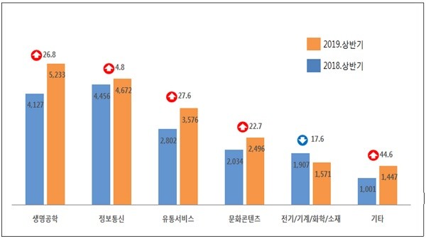 ▲ 2019년 상반기 업종별 벤처투자 현황 (단위:억원). ⓒ중소벤처기업부