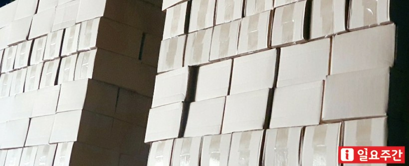 | ▲ A사는 공영홈쇼핑을 통해서 판매한 비말 마스크 중 절반 가량이 방송 중단 이후 재고로 쌓여있다며 창고에 적재해 놓은 비말 마스크를 공개했다. |