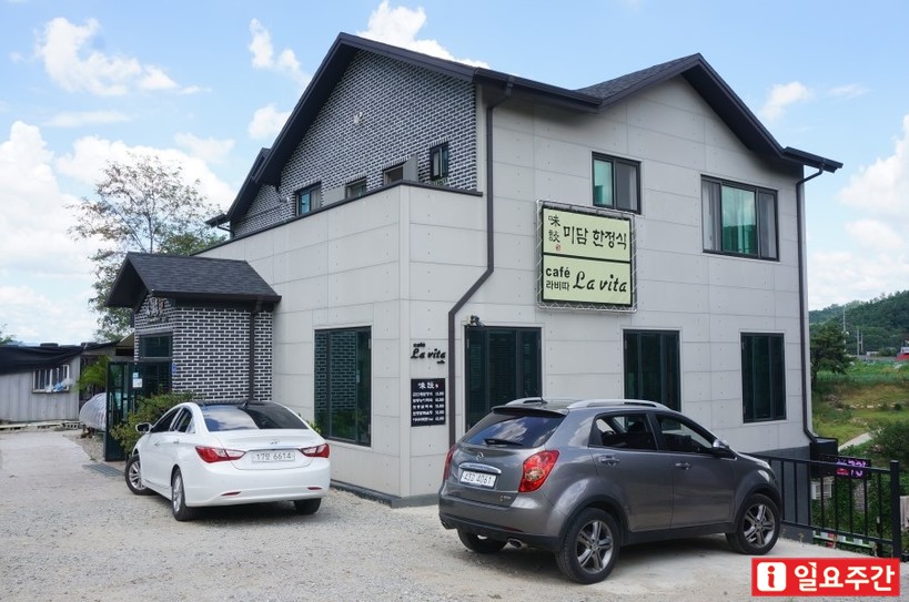 마치 영화 속 장면에서처럼 지중해 해변을 접한 야외 파티장이 떠오르는 미담 한정식 건물 아래 카페 ‘La vita’ 앞 테라스에는 바비큐테이블이 들어서 있고, 이국적 분위기의 어닝(awning: 차양막) 아래, 밤의 조명은 가히 환상적이라 할 수 있다.