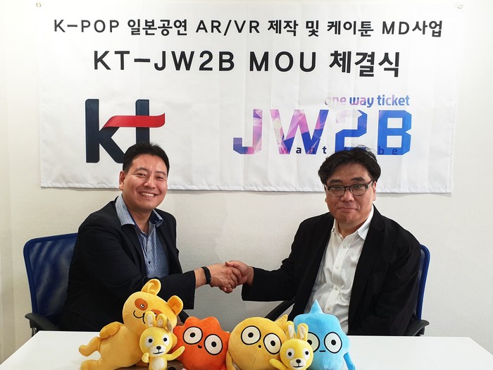 이번 업무협약으로 KT는 JW2B가 일본에서 주최하는 K팝 아티스트의 공연 영상을 VOD로 제공하고, 5G 단말용 AR, VR 영상을 제작해 기가 라이브 TV, 올레 tv 모바일 등을 통해 유통하게 된다.