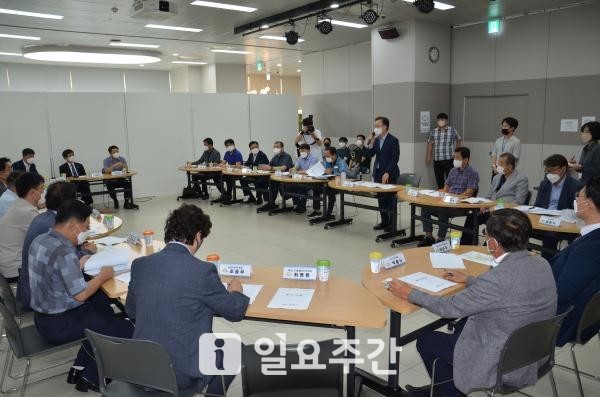 ▲8월 31일 오후 4시, 현대아울렛 6층 시민청에서 열린 폭우피해대책위원회와 금천구청 관계자들 간 간담회.(사진=조무정 기자) |