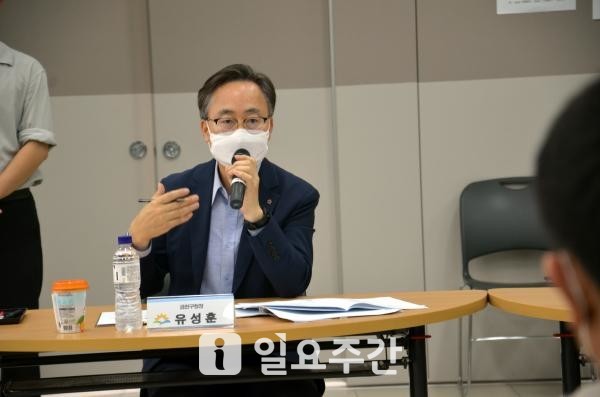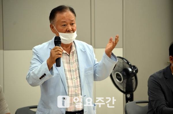 ▲8월 31일 이용복 G밸리산업협회장이 집중호우 피해와 관련해 대책마련을 요청하고 있다.(사진=조무정 기자) |