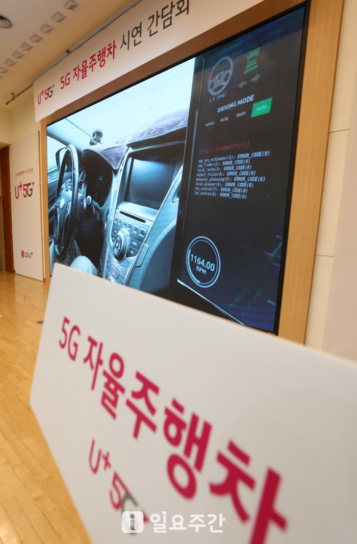 | ▲지난 3월 11일 서울 한양대학교에서 열린 '한양대-LG유플러스 세계최초 5G 자율주행차 공개 시연 기자간담회' 장면. |