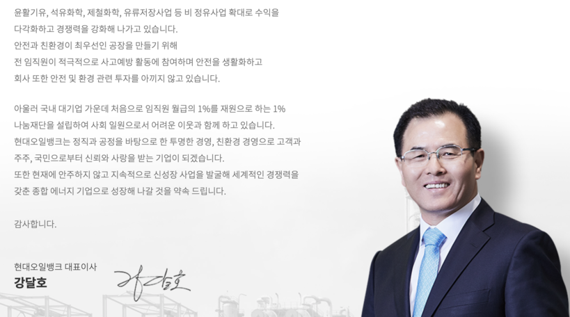 ▲현대오일뱅크 대산 공장이 독성 물질이 배출 허용 기준치를 초과한 폐수를 인근 자회사에 배출했다는 의혹이 지난 2019년 제기됐다. <사진=현대오일뱅크 홈페이지 캡쳐> |