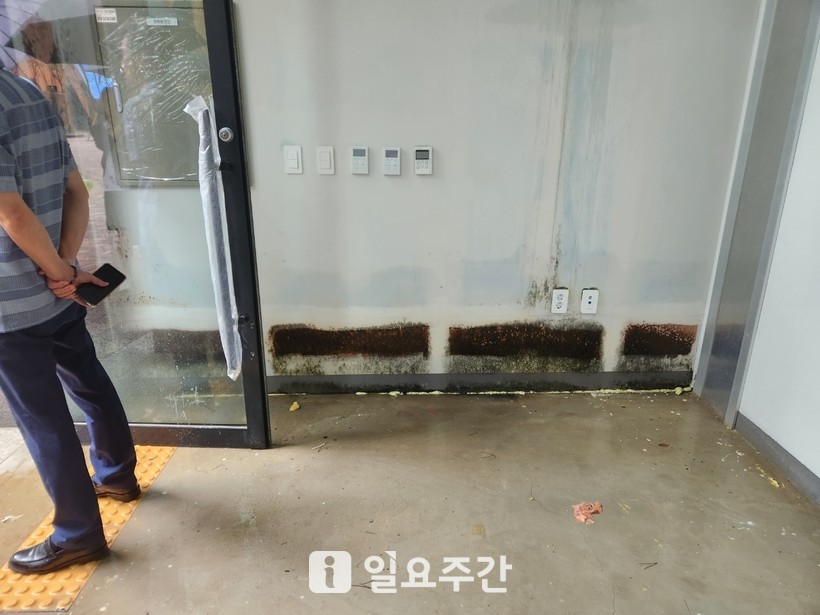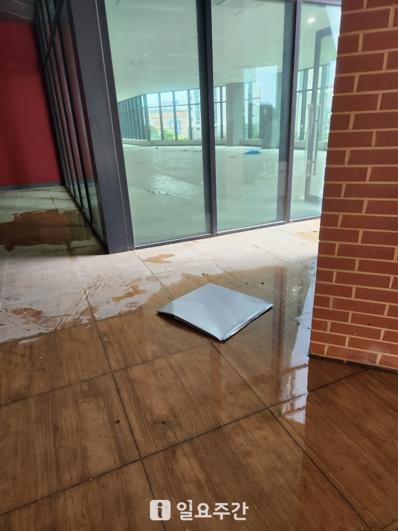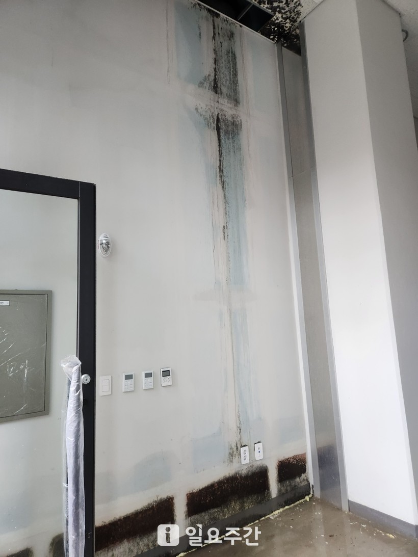 이어 "현장은 화장실 칸막이도 없고 호실 한가운데 물폭탄이 쏟아져 곰팡이 투성이에다 칸막이벽도 물에 잠겨 현재는 벽체 하부를 잘라서 말리고 있는 호실이 부지기수이다. 또한 지하주차장도 비가 오면 물바다가 된다"며 "마감이 제대로 되지 않아 전선이 노출된 채로 방치돼 있고 전기콘센트가 설치된 벽면으로 물이 줄줄 흘러내리고 있어 감전 등 안전사고가 걱정되는 상가를 누가 임차하겠으며 어떤 고객이 이용하겠느냐"고 분개했다.