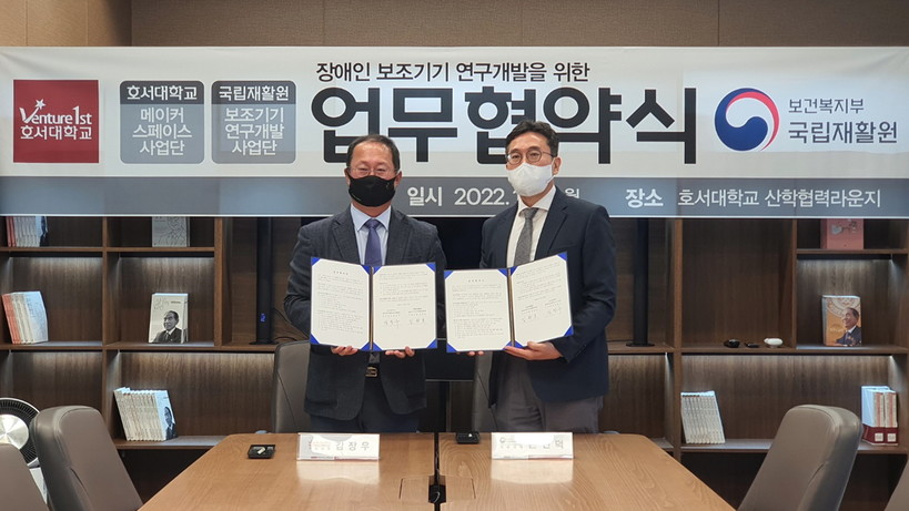 [일요주간 = 김성환 기자] 호서대학교 메이커스페이스와 보건복지부 국립재활원 보조기기연구개발사업단은 장애인의 삶의 질 향상에 기여하기 위해 업무협약을 체결했다고 15일 밝혔다.