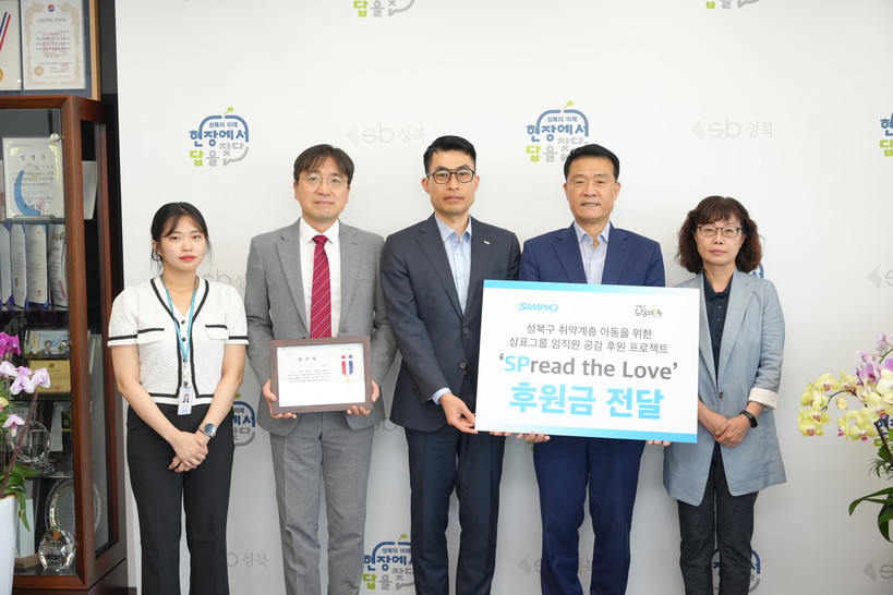 [일요주간 = 김성환 기자] 삼표그룹(회장 정도원)은 지난 9일 ‘임직원 공감 후원 프로젝트(SPread the love)’를 통해 성북구청에 취약계층 아동 가정을 위한 성금 1080만 원을 전달했다고 13일 밝혔다.