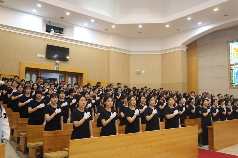 [일요주간 = 김성환 기자] 호서대학교 간호학과가 예비 간호사들의 전문직 소양과 윤리의식을 고취하기 위한 나이팅게일 선서식을 개최했다. 학생들은 촛불을 밝히며 보건의료인의 책임과 사명을 되새겼다.