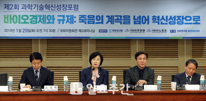 | ▲ 지난 1월29일 국회 의원회관 제2세미나실에서는 '바이오경제와 규제 : 죽음의 계곡을 넘어 혁신성장으로'라는 주제로제 2회 과학기술혁신성장포럼이 열렸다. |