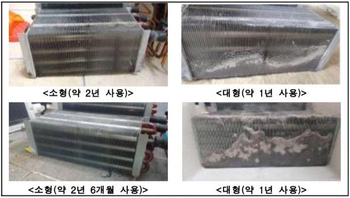 ▲ 애완동물 유무에 따른 LG전자 의류건조기 모델별 콘덴서 먼지 축적량.(한국소비자원 제공) |